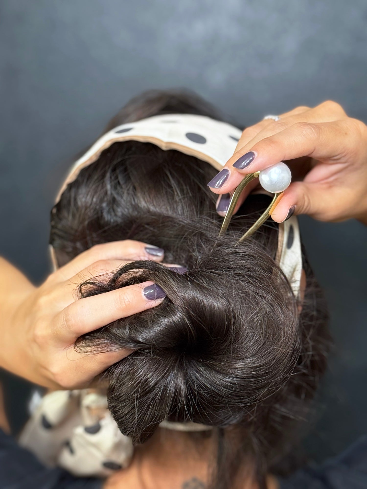 Refined and timeless, this hair bun pin with pearl decor adds an elegant accent to any hairstyle. Perfect for both everyday wear and special occasions, it transforms a simple updo into a statement of sophistication.